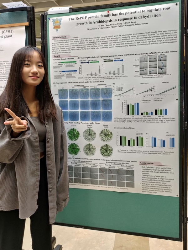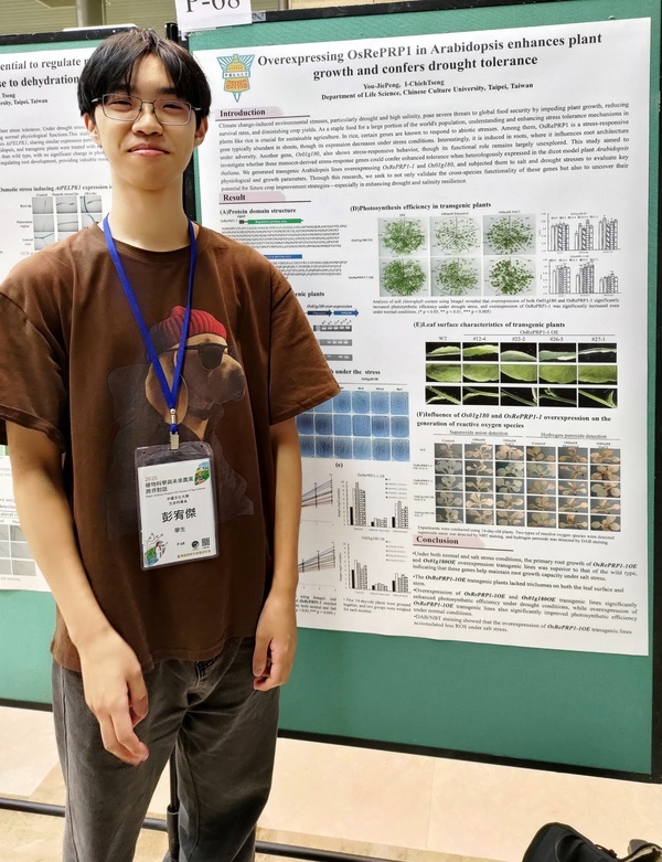 Overexpressing OsRePRP1 in Arabidopsis enhances plant growth and confers drought tolerance You-Jie Peng, I-Chieh Tseng 本研究將水稻抗逆境基因 OsRePRP1 與 Os01g180轉殖於雙子葉模式植物阿拉伯芥 。實驗結果證實,轉基因植株在乾旱逆境下具備更佳的光合作用效率 。特別是 OsRePRP1 過量表現株系,在正常環境下即展現較大的植株體型與較長的根系 。顯示此類基因的異位表現 (heterologous expression) 能有效增強植物的抗逆境能力,為未來農業改良提供具科學價值的遺傳資源與應用策略。 |