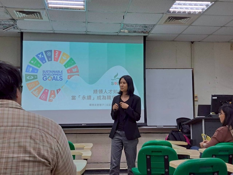 本次講座以「綠領人才知多少——當『永續』成為職場必修課」為題,邀請到侯珏講師分享環境教育與綠色產業的實務經驗。