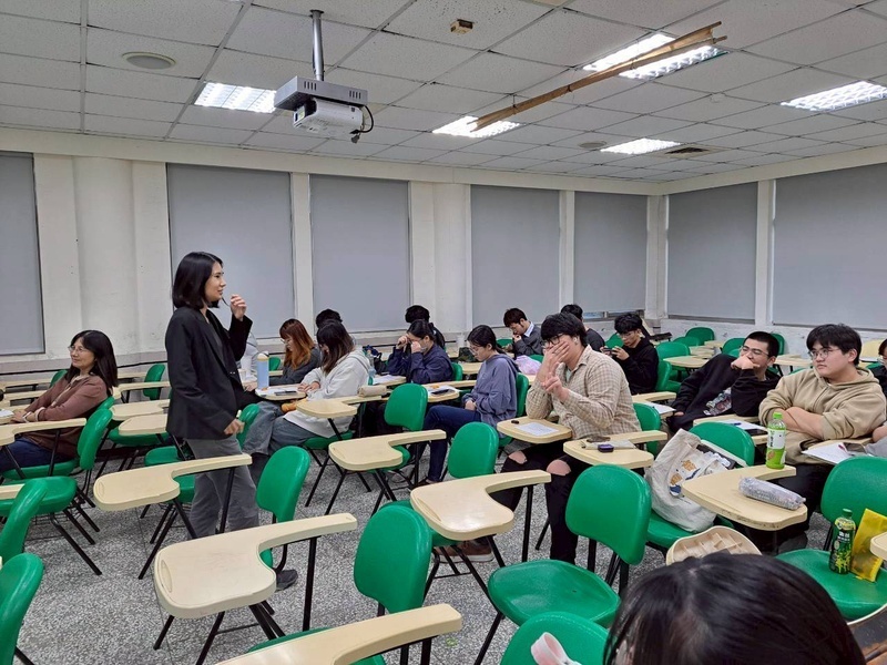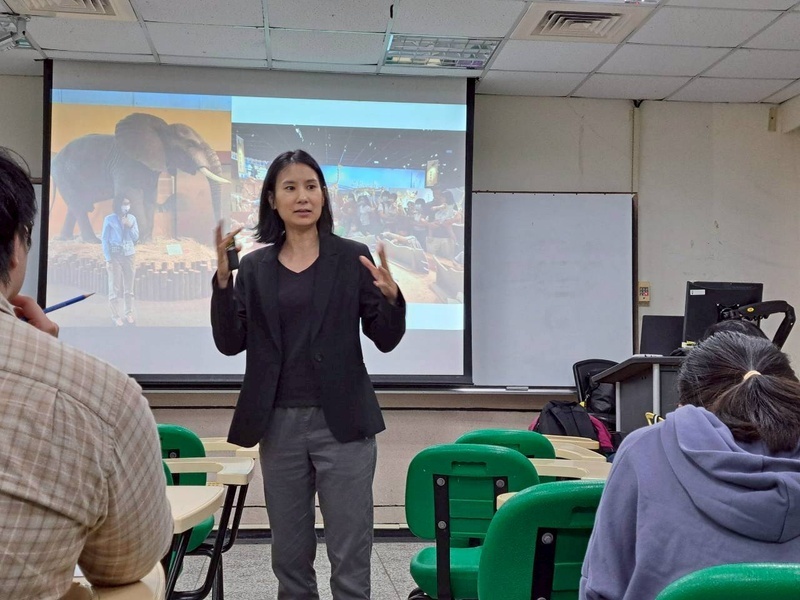 侯珏老師先與在場的學生進行互動,詢問大家對於生命科學系未來出路的看法。以此作為破題,分享了自己在生科領域的嘗試,以及如何從自然保育跨足到環境教育的歷程。侯老師詳細介紹了其所屬企業「環境友善種子股份有限公司」,這是一家在臺灣環境教育領域相當知名的社會企業。他們的核心理念是扮演「人與自然之間的橋樑」,將枯燥的科學知識或環境議題,轉化為大眾聽得懂、有感觸的體驗。主要的業務是推動環境永續發展並舉辦多元永續活動。環境教育是現代 ESG 浪潮下的關鍵角色。綠領職涯不再侷限於傳統的學術研究,而是一個高度跨領域、重溝通且具備社會影響力的產業選擇。對於即將步入職場的生科人而言,將深厚的科學背景轉化為環境議題的轉譯能力,正是應對未來職場變化的核心動能。