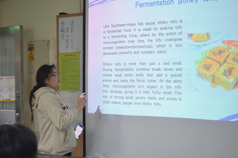 從學生報告表現來看,其報告基本架溝完整,呈現方式也符合科學論文規範,顯見該校對扎實基礎科學教育訓練的重視。為了深化本校學生與該校學生的交流互動,協助接待的巫老師今年於參訪前還特別與該校老師事先討論以發酵與塑膠做為分組討論的交流主題,生科系同學先以臺灣的臭豆腐與塑膠使用問題為例,進行五分鐘的英文報告開場,之後向陽高中的學生會以納豆與日本的塑膠使用為例,彼此進行約七分鐘的課堂討論與交流。參訪尾聲,師生之間交換禮物,也交換聯絡方式,該校師生對於本校生科系過去三年來的盛情接待與協助完成其海外修業課程表示非常感謝,也對本校山上優美的學習環境印象深刻,也期望未來能持續進行交流。