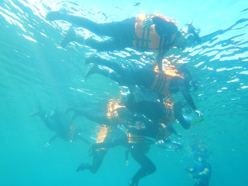 除了室內課程之外,也安排至研究中心實地了解海龜收容現況,至海生館展場觀賞海洋生物活體與聽取解說,在課程最後一天的下午則是安排至東港魚市場,在下雜魚堆中認識平時罕見的魚類。本年度也首次安排浮潛活動,於墾丁出水口實地觀察海洋生物。